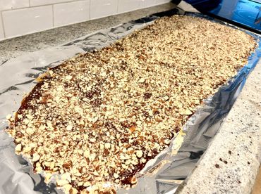 Handmade in small batches, our ultra‑thin Organic Dark Chocolate Almond Rocha blends silky dark chocolate, brittle with perfectly toasted almonds with a touch of sea salt for a crisp, elegant bite.